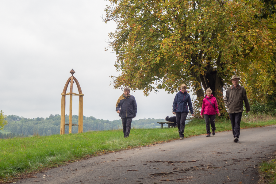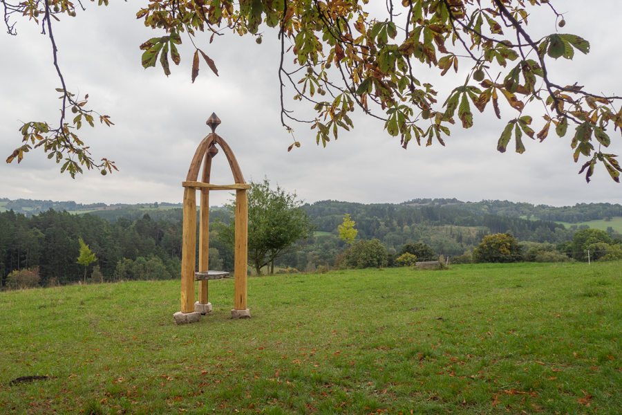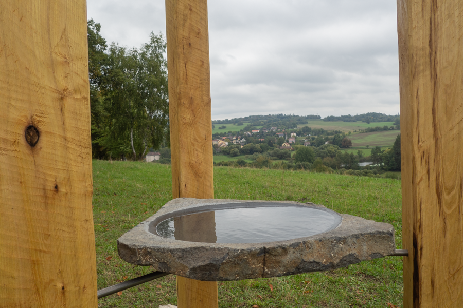 Kaple pro přírodu sochaře Jakuba Doubravy ze Svatováclavské potulky 2025 je zatím na kopci u Hronovy Vesce. Její trvalé místo bude ale na mlýně Práchovna, který v údolí Smutné opravuje Pavel Dobrovský.
