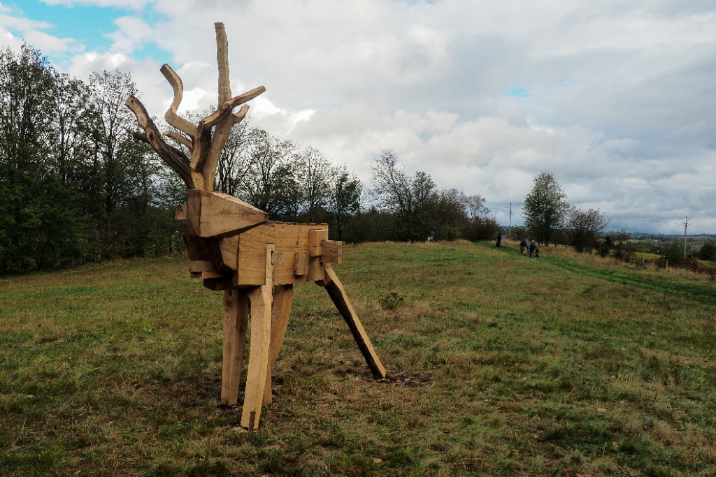 Sochař Matěj Řízek vytvořil dvě dřevěné sochy: Jelena na kopci za Kaliští (2024) a Oblak u cesty pod Šichovou Vescí (2025).